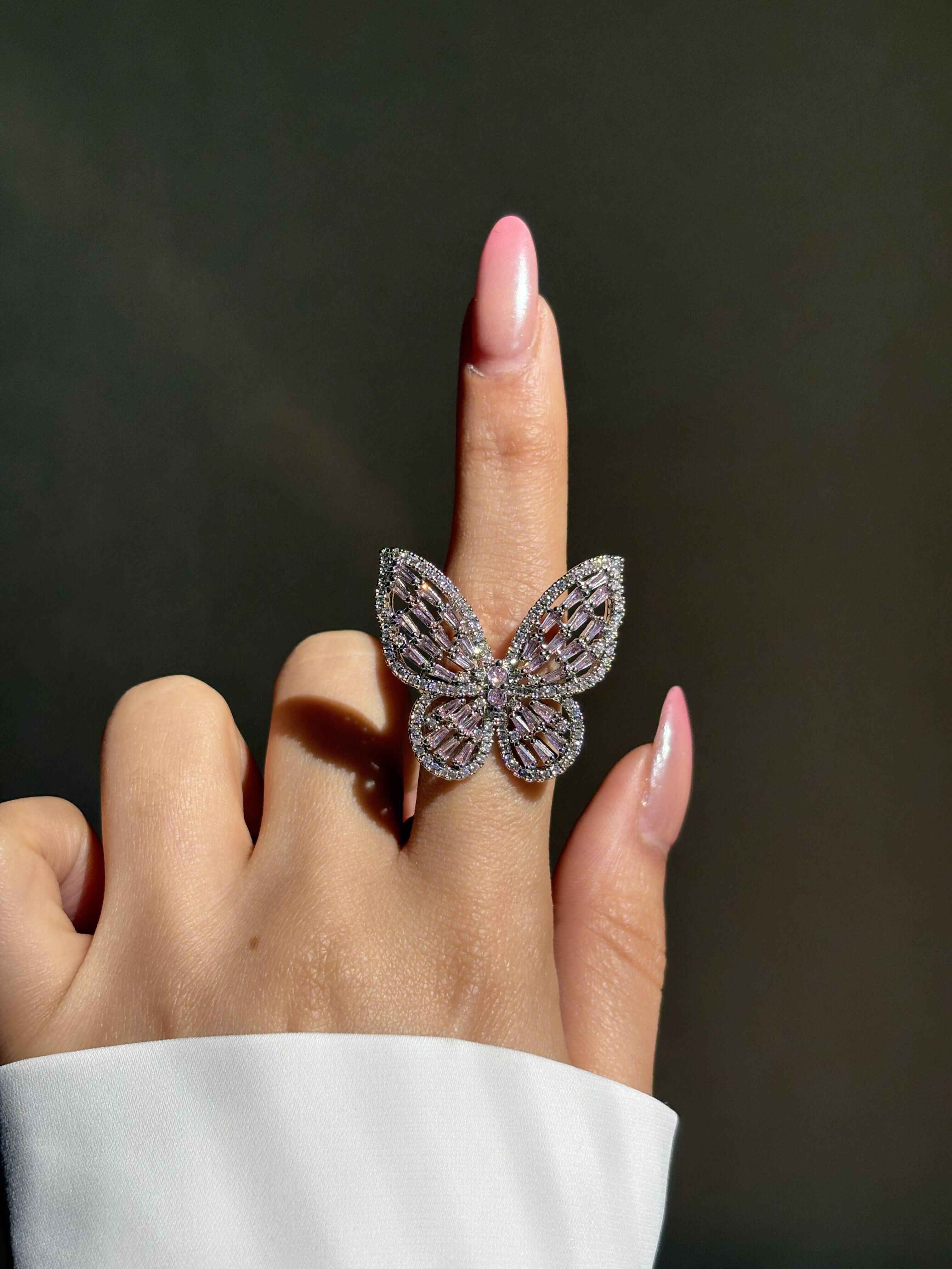 انکشتر پروانه نگین صورتی